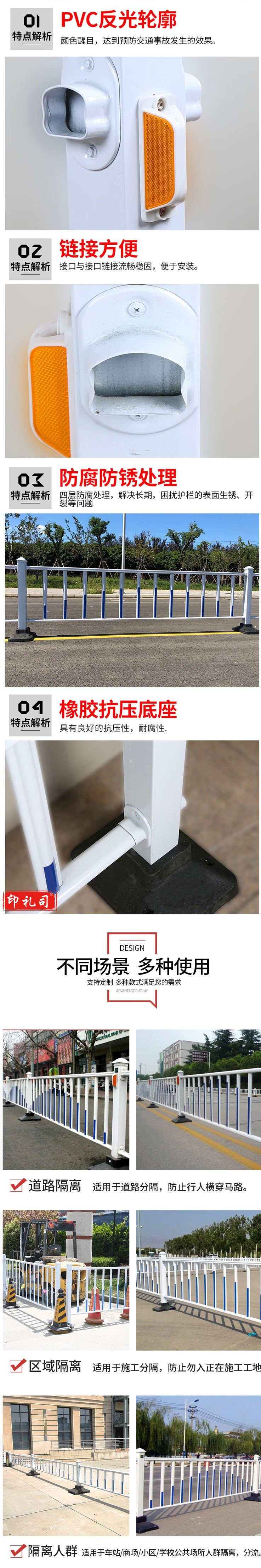 道路护栏 隔离栏杆 锌钢护栏 交通设施防撞活动护栏立柱100CM高+底座