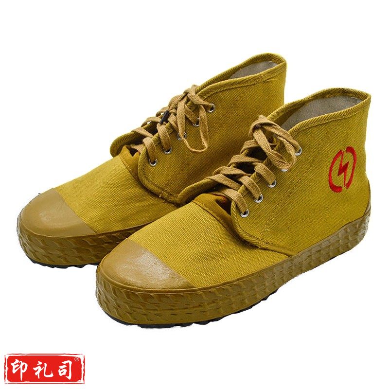 电工绝缘鞋 劳保帆布透气高帮男女电力高压黄胶鞋解放鞋工地鞋