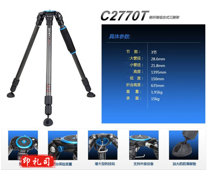 百诺(Benro)组合式碳纤维无中轴三脚架 C2770TN
