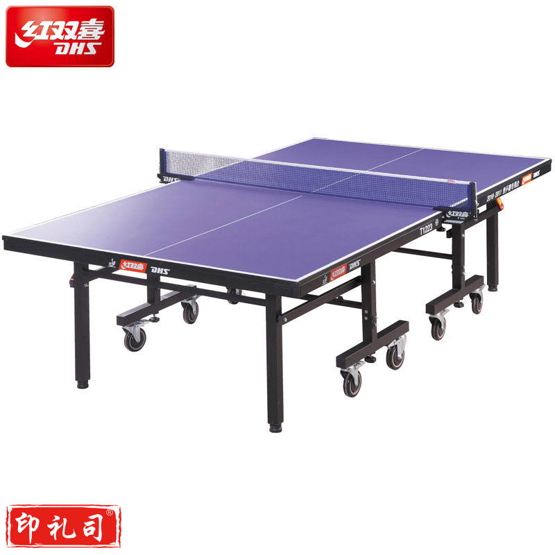 红双喜T1223乒乓球桌折叠式可移动室内标准乒乓球台 球台一副带脚轮