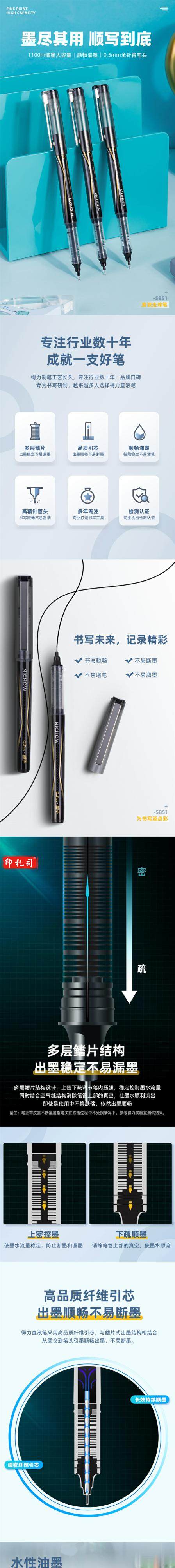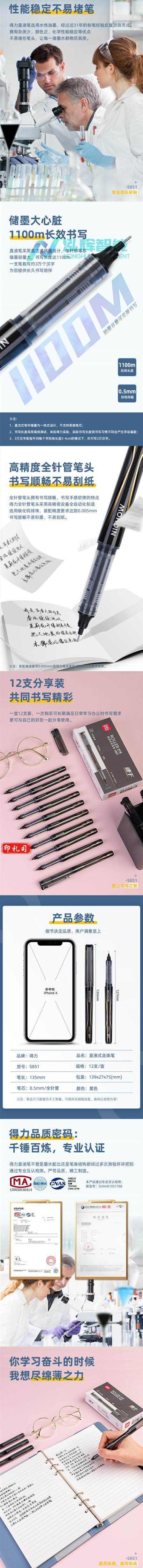 得力S851直液式走珠笔0.5mm全针管(黑)(12支/盒 单位:支)