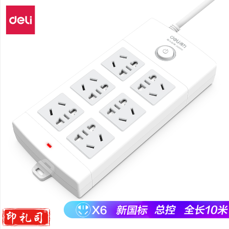 得力18207插座_6组_10米_PVC袋装(白)(只)