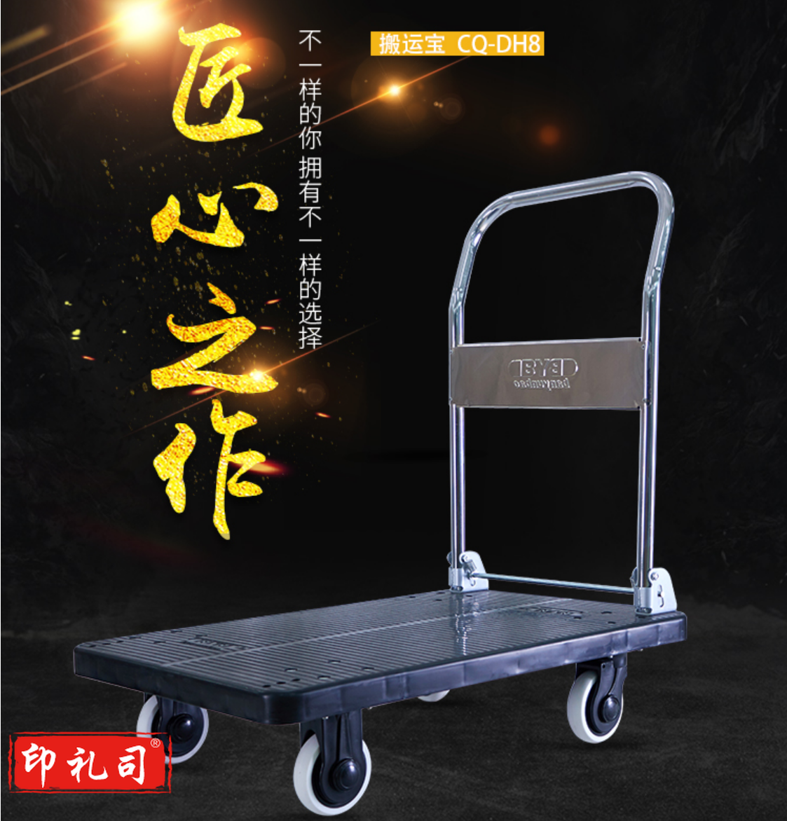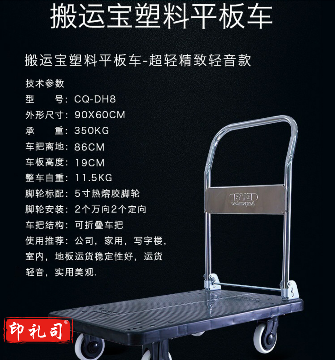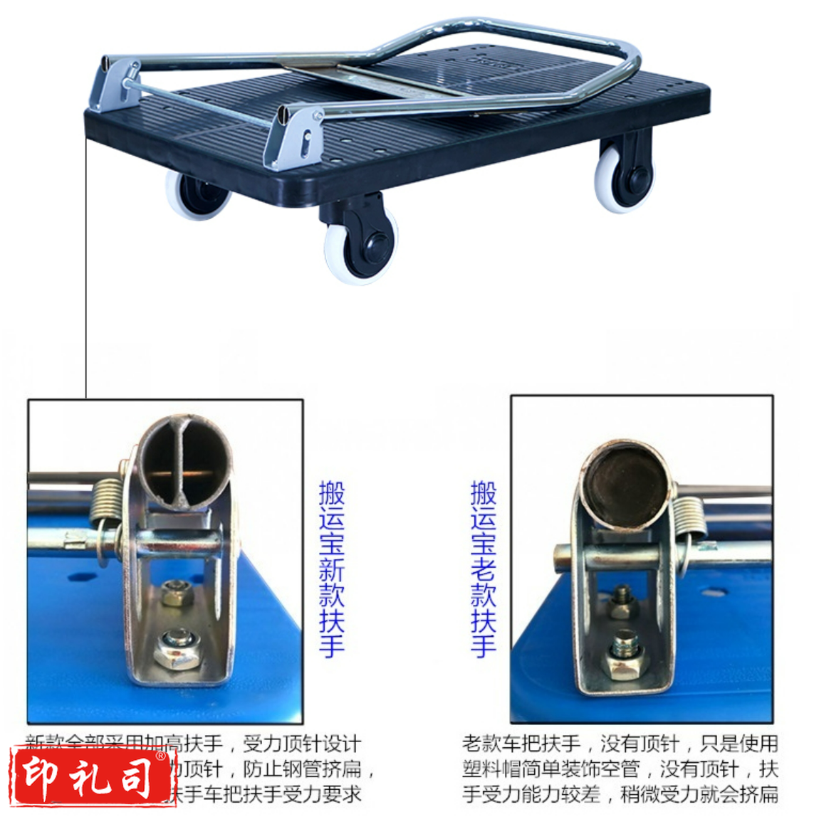 搬运宝 CQ-DH8 超轻平板车折叠手推车拖车小推车小拉车拉杆货车塑料搬运车 大号精致轻音款90x60cm 承重700斤