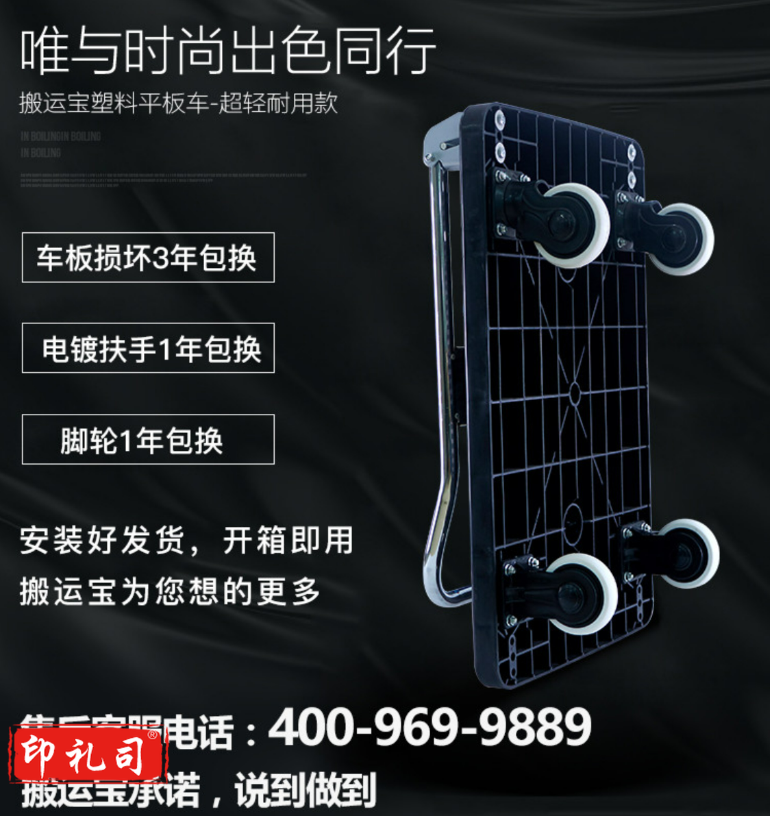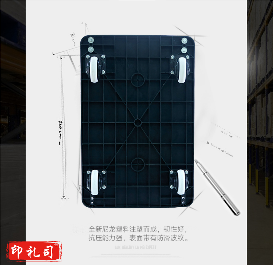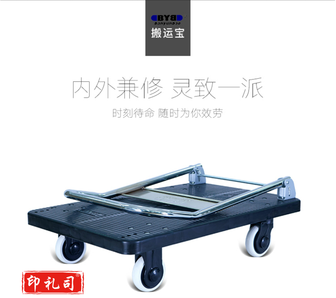 搬运宝 CQ-DH8 超轻平板车折叠手推车拖车小推车小拉车拉杆货车塑料搬运车 大号精致轻音款90x60cm 承重700斤
