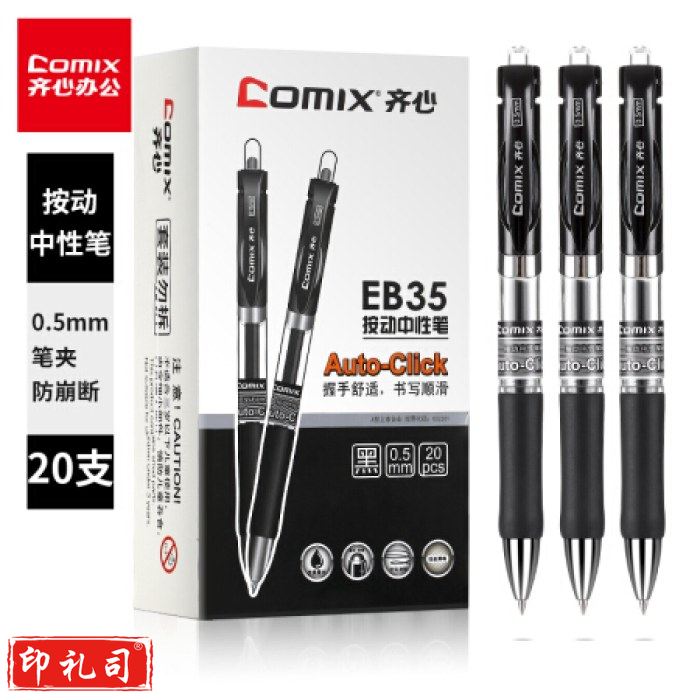 齐心(Comix)黑色子弹头按动中性笔/水笔/0.5mm EB35 20支/盒