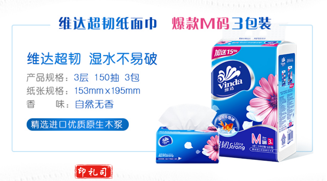 维达(Vinda) 抽纸 超韧3层 150抽软抽*3包