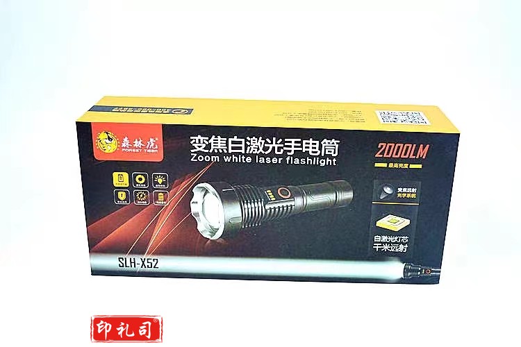 森林虎X52 LED手电筒伸缩变焦可充电式远射便携 黑色