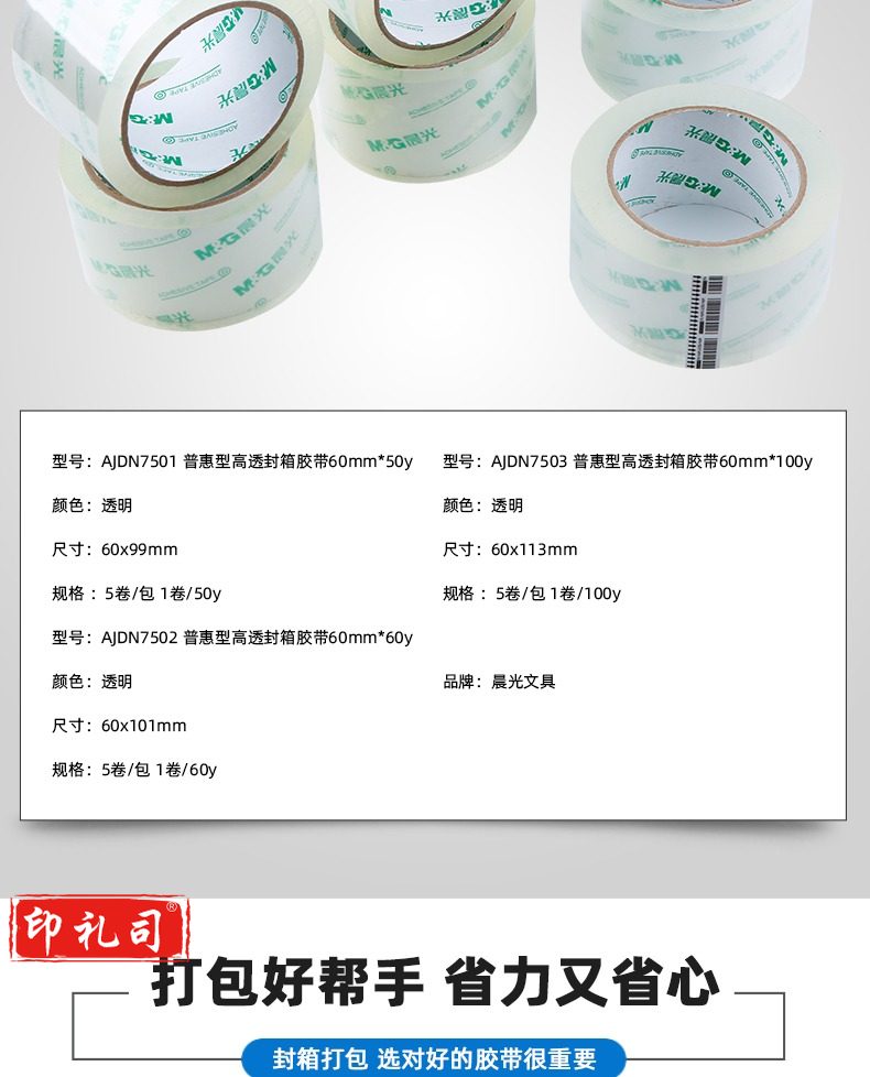 晨光普惠高透封箱胶带60mm*50y 1卷AJDN7501