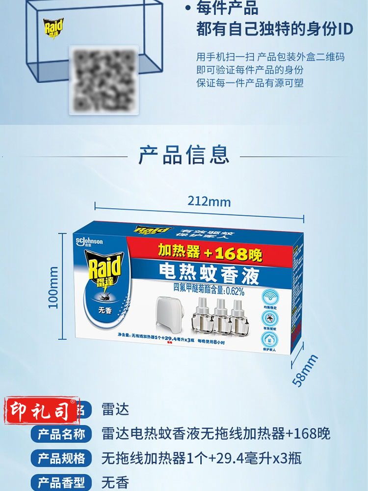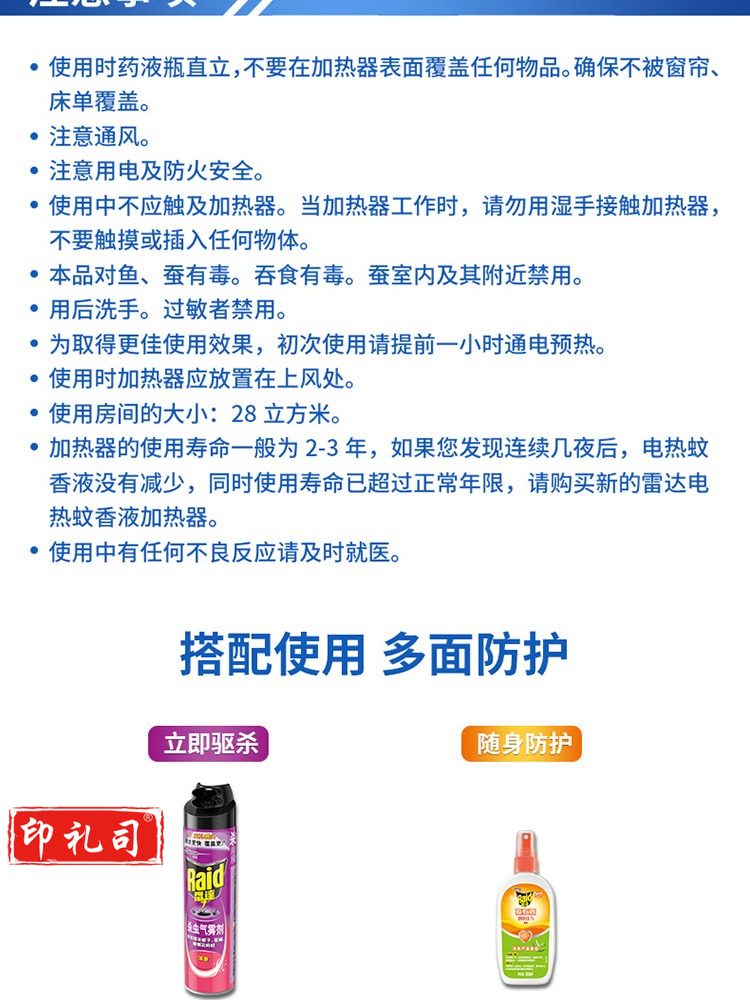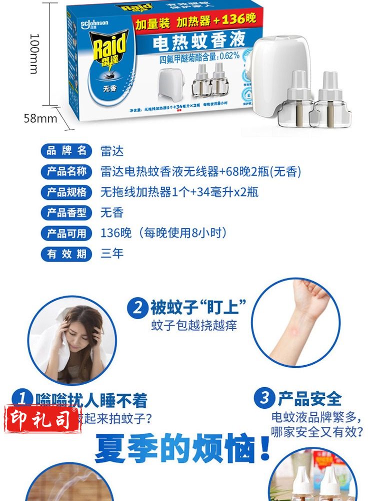 雷达/Raid 电蚊香液 无香型 无线1器+2液(112晚) 电驱蚊器