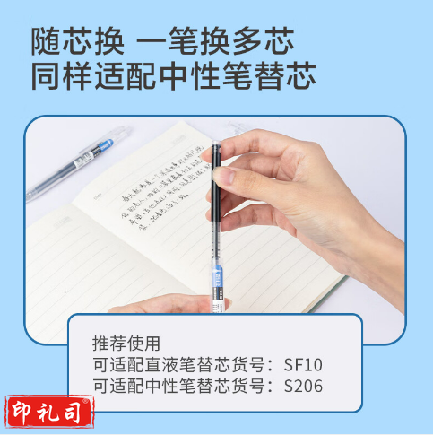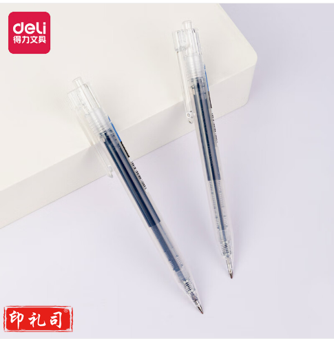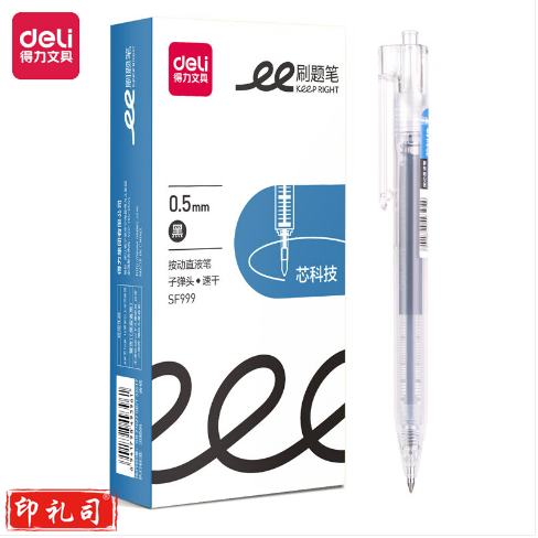 得力SF999按动直液笔 水笔0.5mm子弹头(黑)(12支/盒)