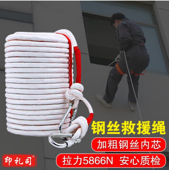 准航逃生绳消防逃生安全绳救生救援绳登山攀岩高空作业绳子 15米双钩