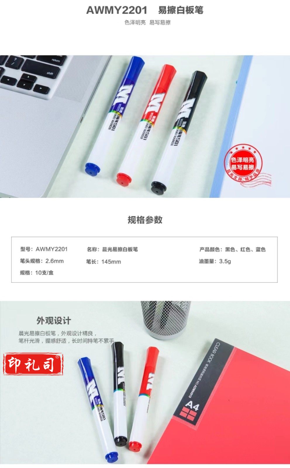 晨光(M&G)AWMY2201 黑色易擦白板笔 10支/盒