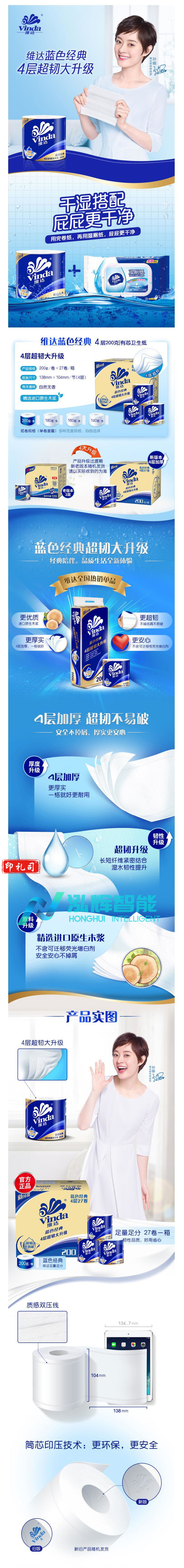 维达 卷纸 蓝色经典200克27卷 4层加厚 卫生纸 整箱