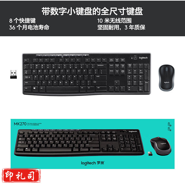 罗技 MK270 无线键鼠套装全尺寸 带无线2.4G接收器