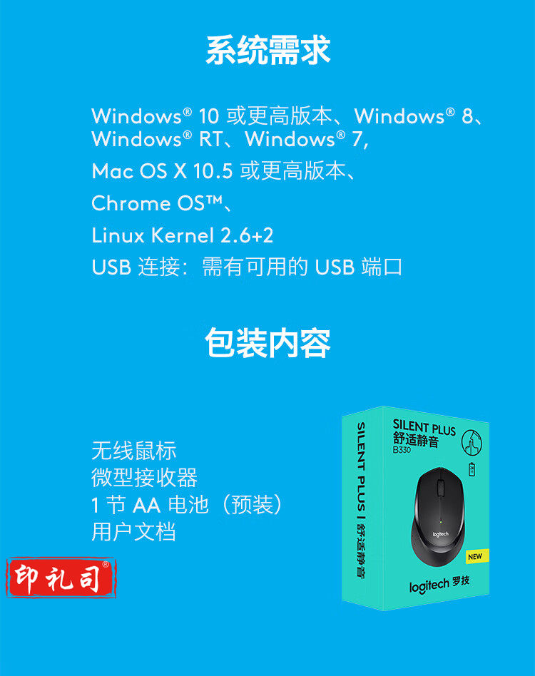 罗技(Logitech)B330 无线轻音鼠标 黑色
