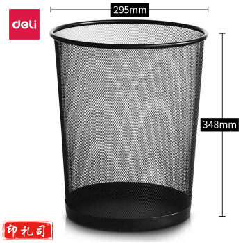 得力9189大号圆纸篓垃圾桶(黑)295x240x343mm金属丝网喷塑工艺