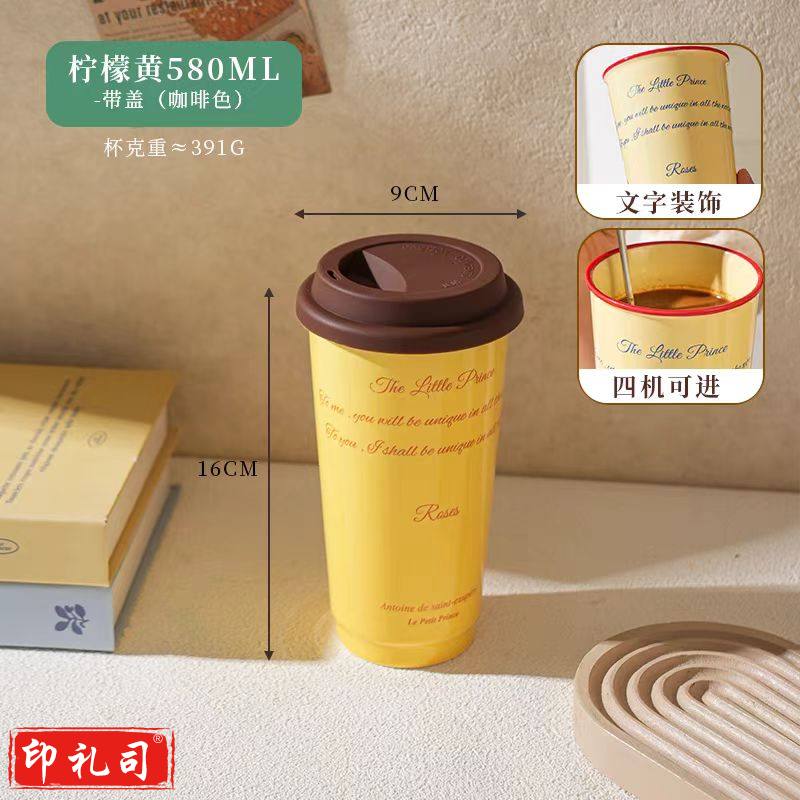 创意陶瓷手握马克杯大容量水杯580ML 带盖