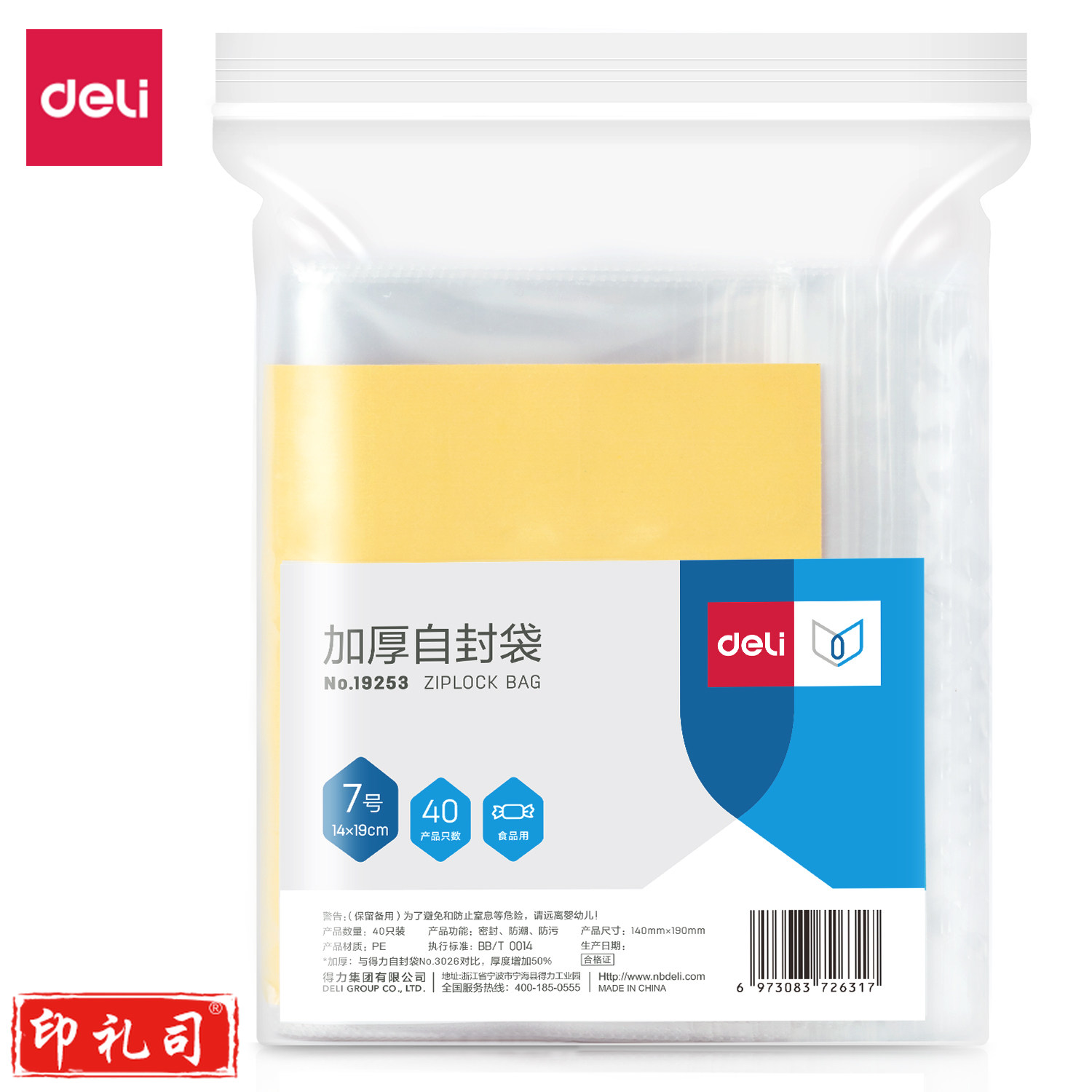 得力19253加厚自封袋(14*19cm)7号(透明)(40只/包)