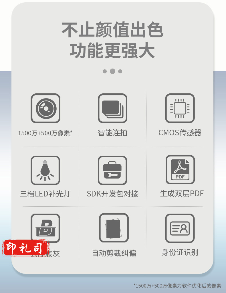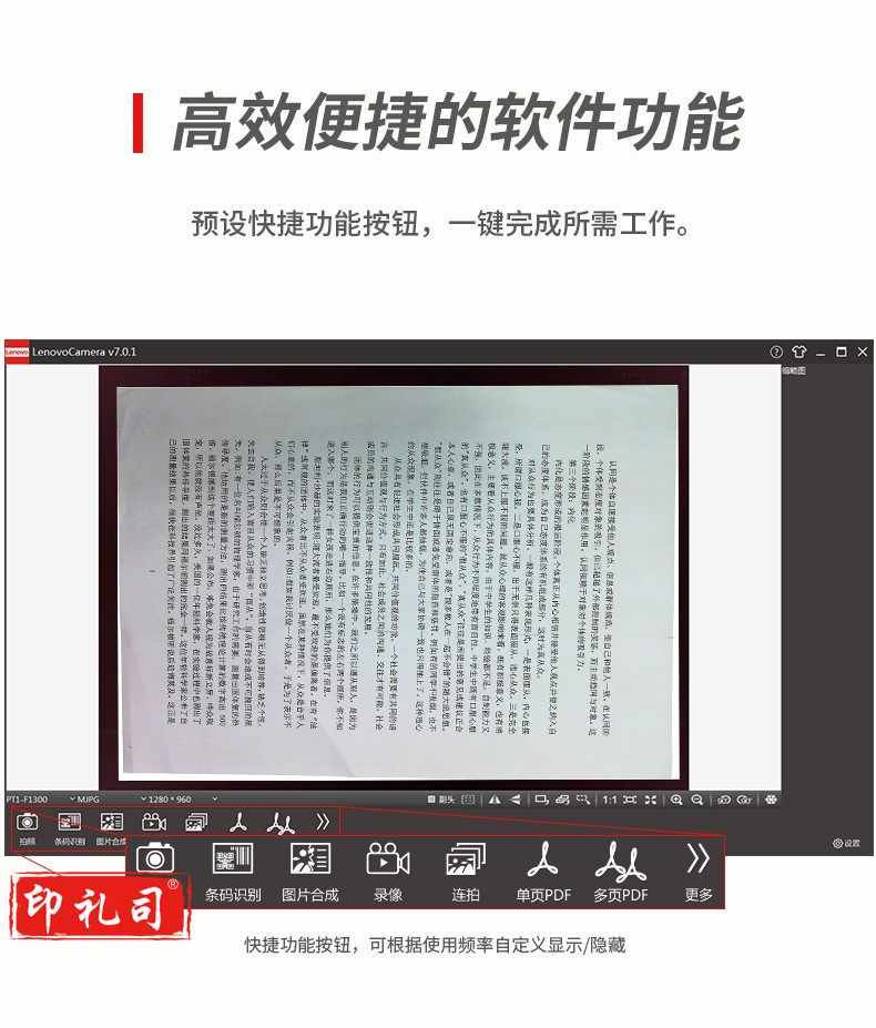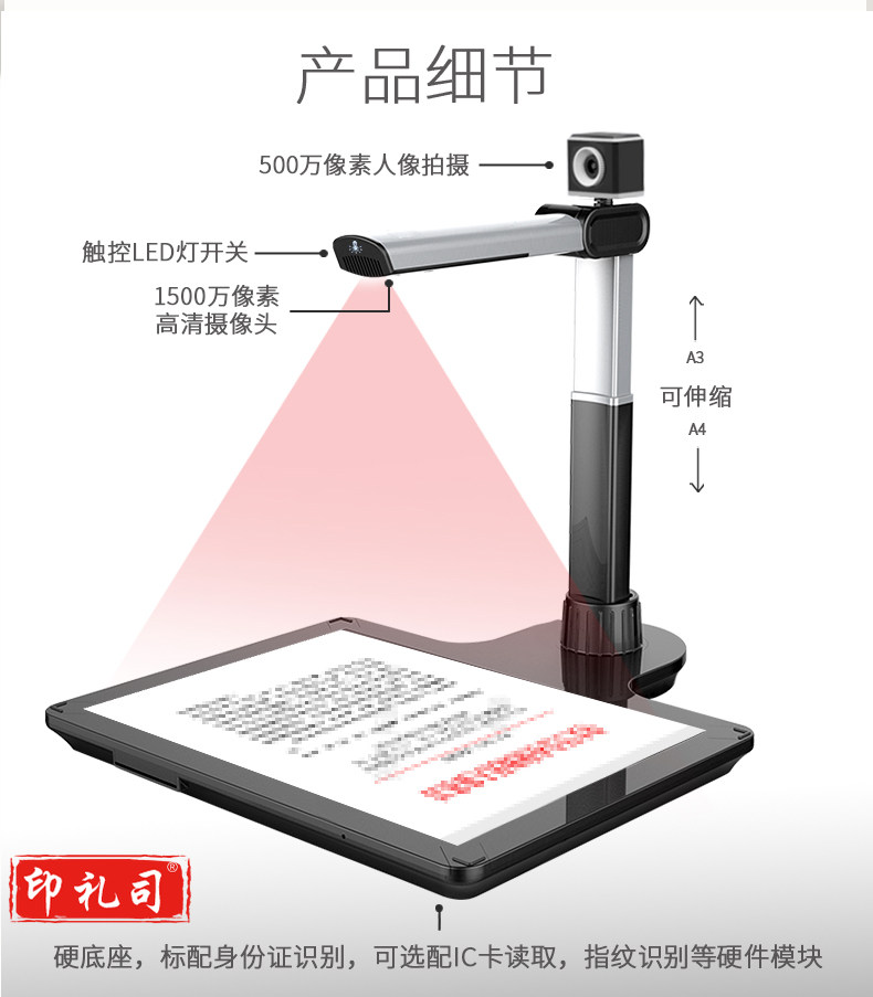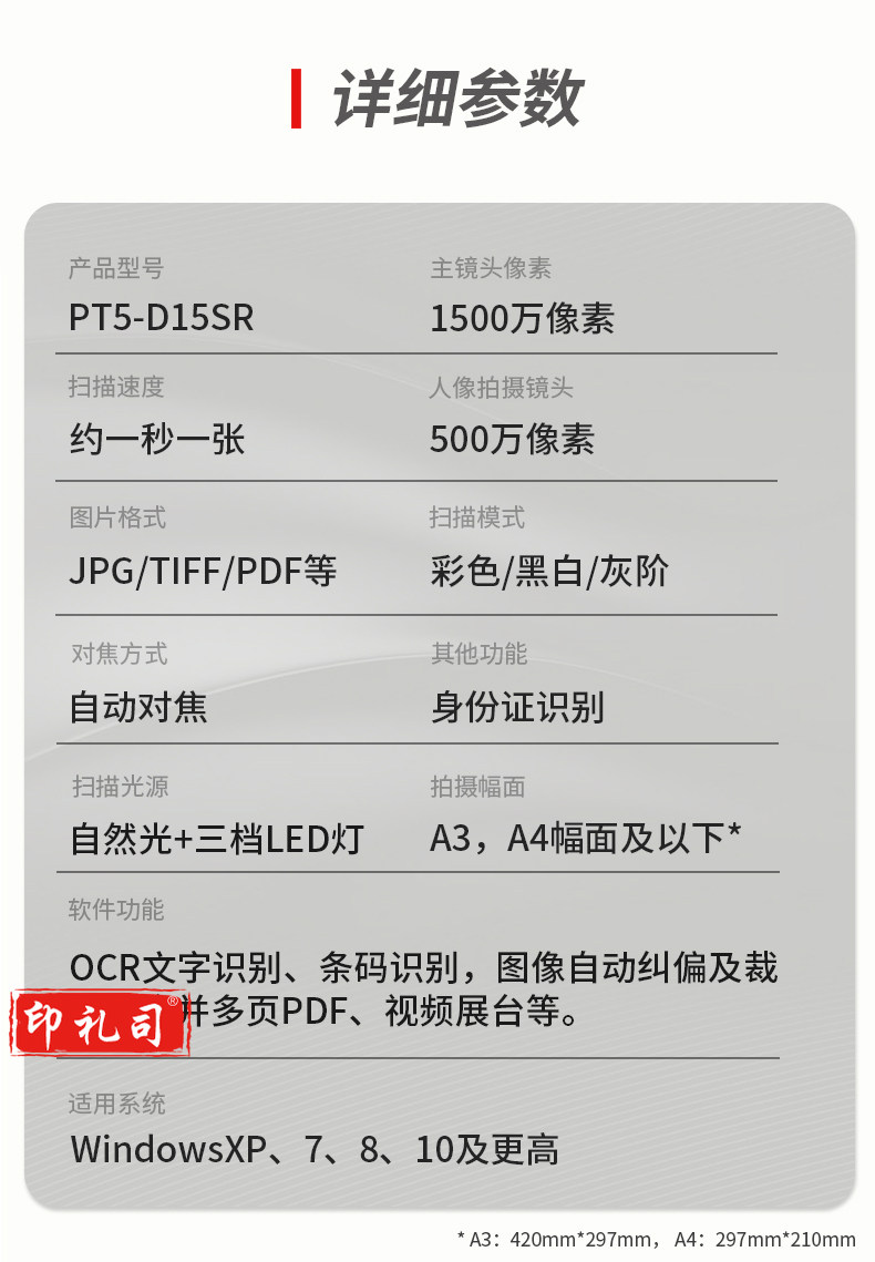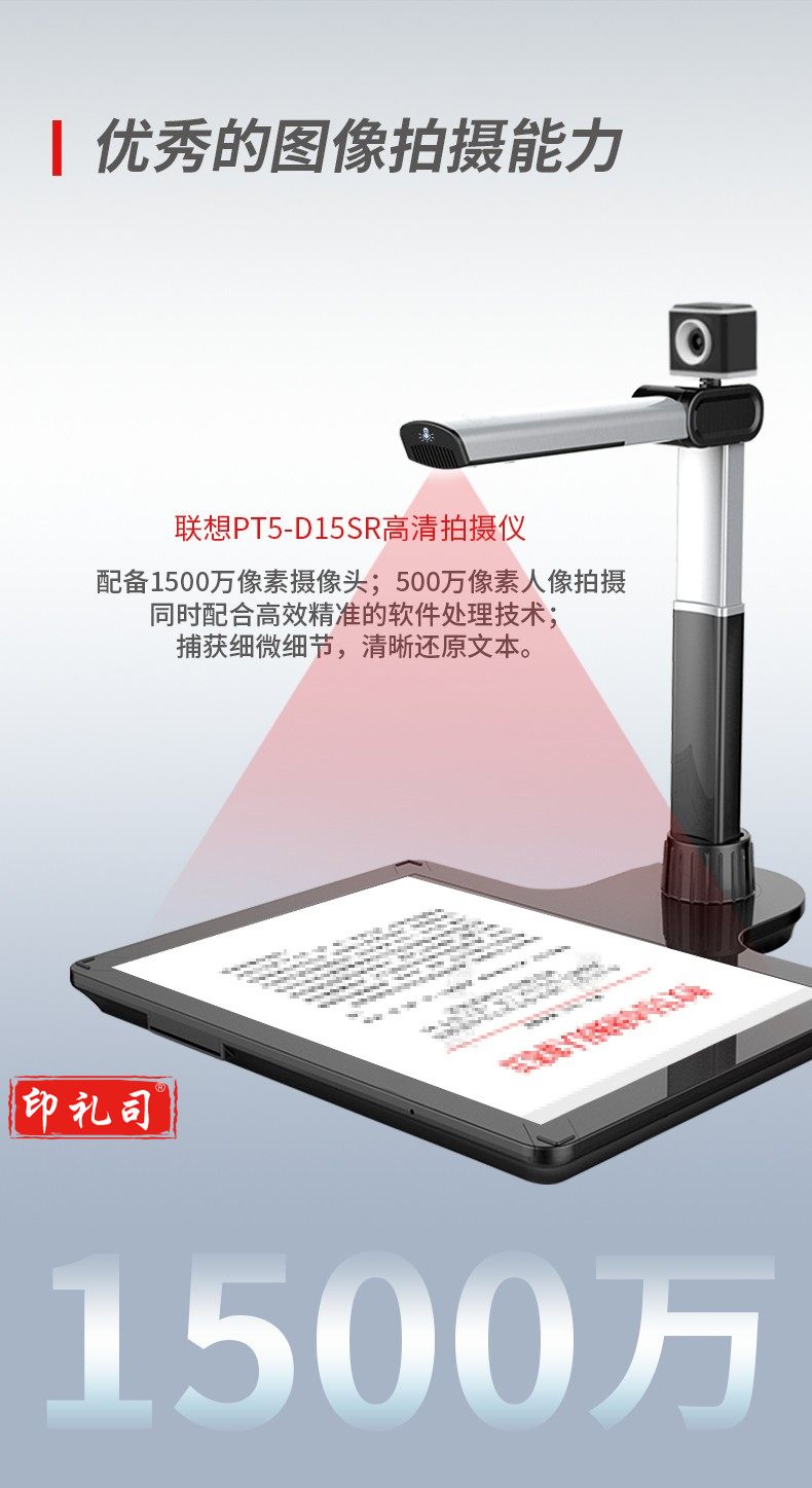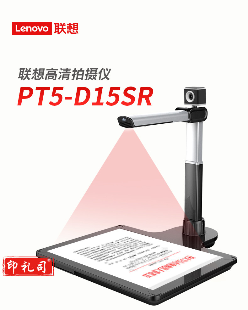 联想(Lenovo)PT5-D15SR高拍仪 1500+500万高清双镜头自动对焦扫描仪 硬底A3 幅面带身份证阅读器办公定制
