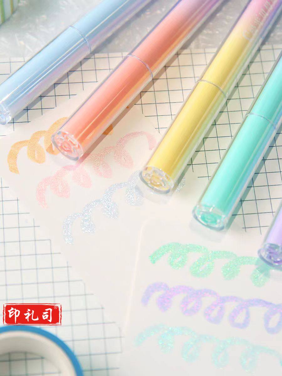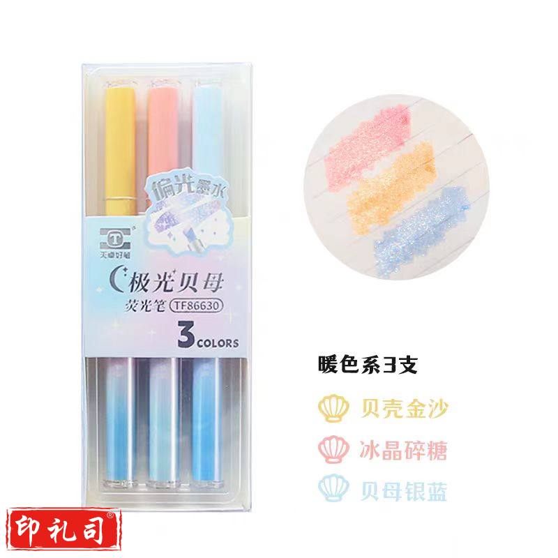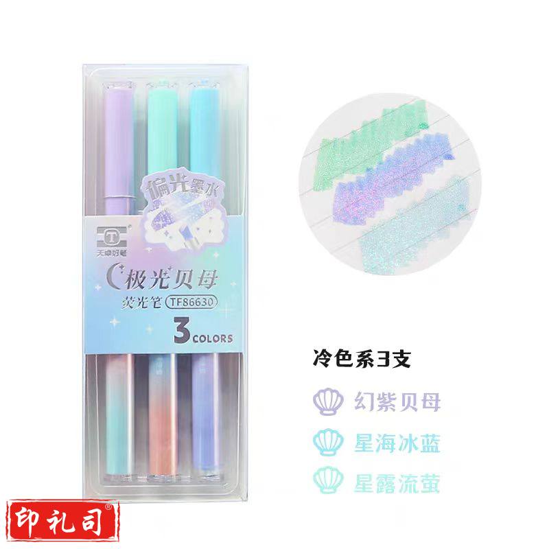 极光贝母细闪荧光笔闪光学生重点标记手帐荧光笔 三支装(冷色、暖色可选)