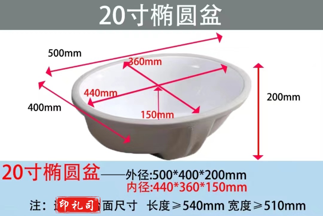 洗手盆 水盆 椭圆形台下盆单孔 20寸(不含安装)