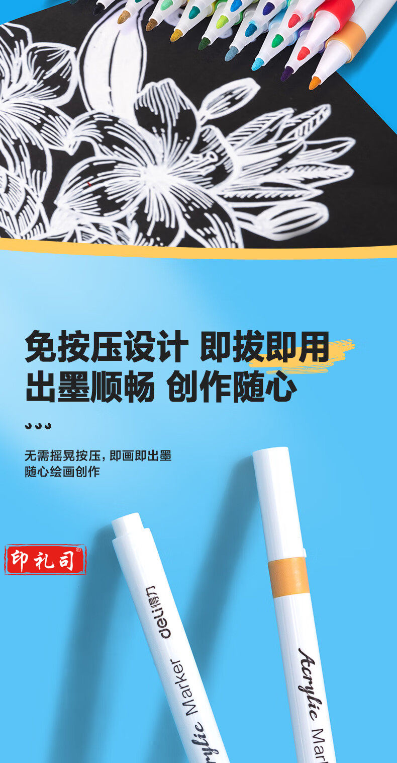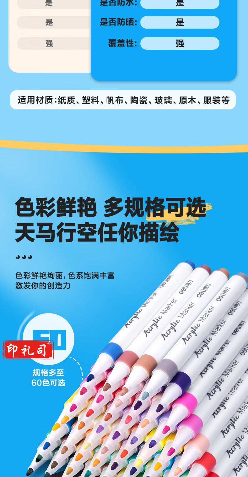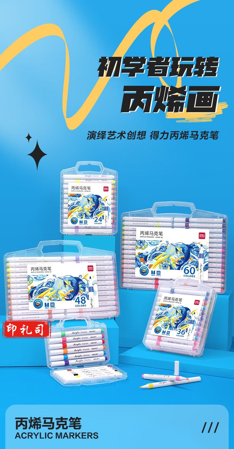 得力(deli)60色丙烯马克笔 PP盒装细圆杆防水儿童美术学生绘画手绘涂鸦DIY画鞋丙烯颜料 HM108-60