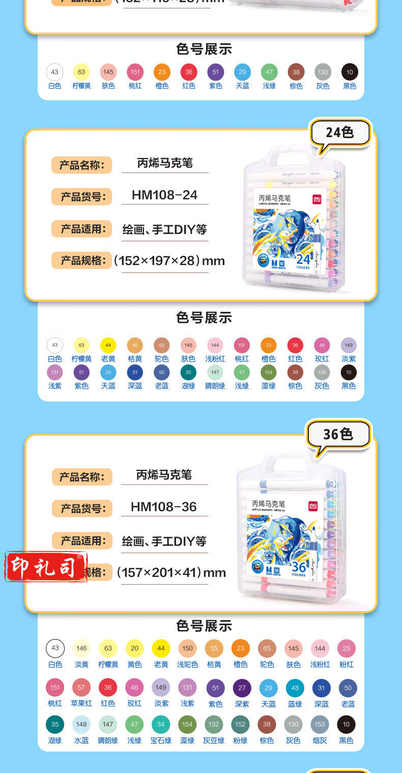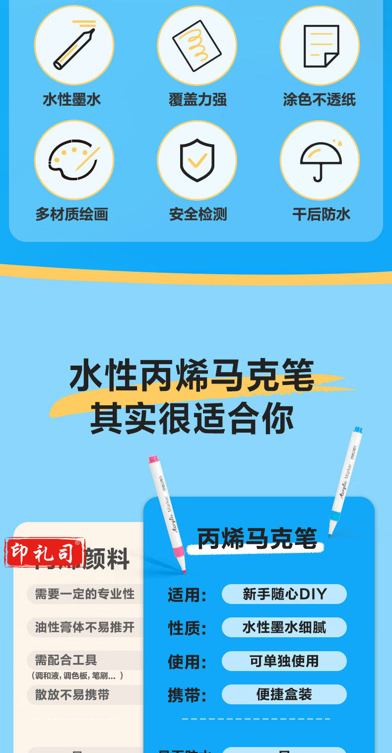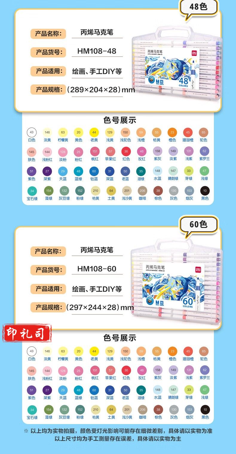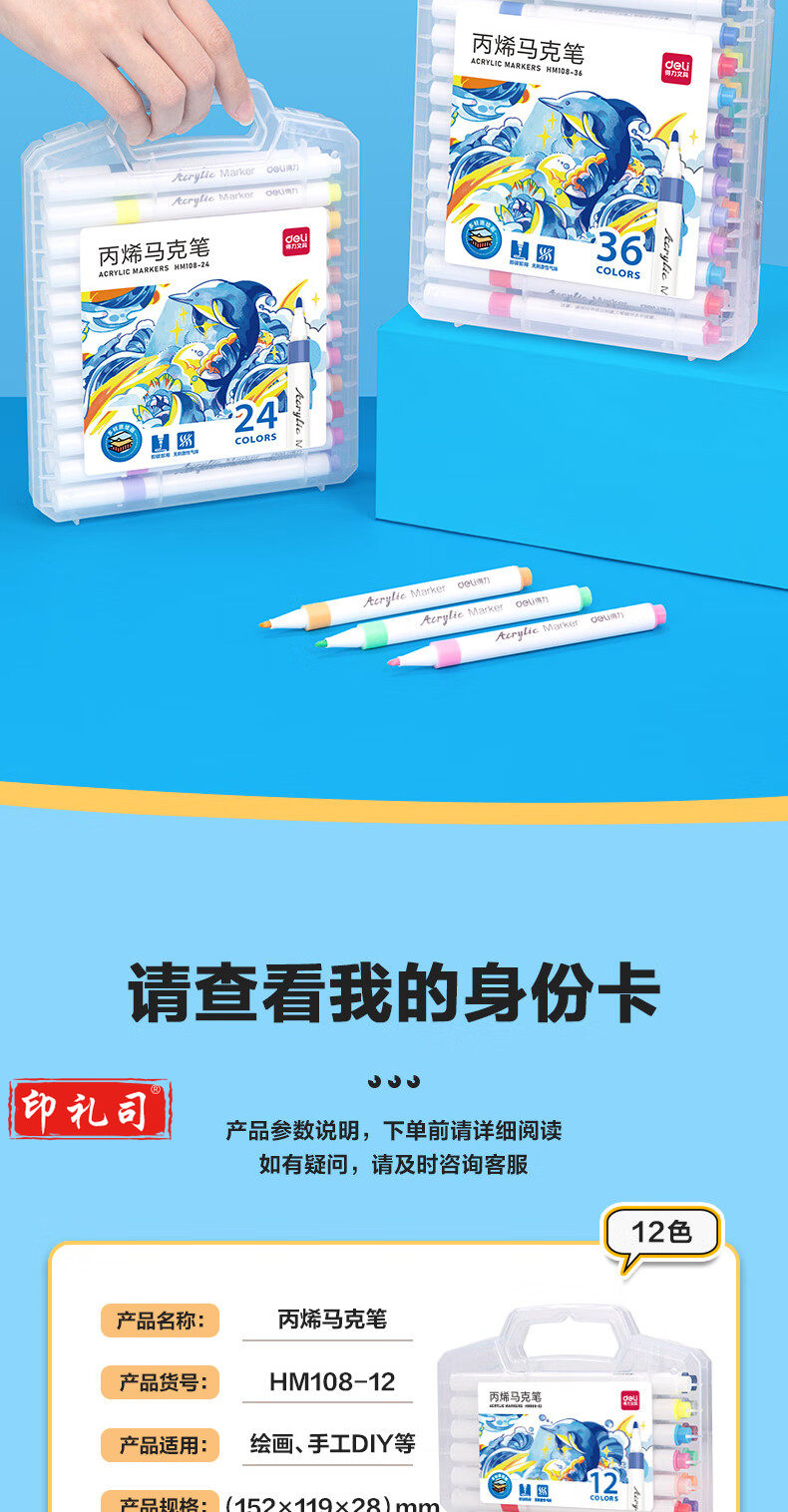 得力(deli)60色丙烯马克笔 PP盒装细圆杆防水儿童美术学生绘画手绘涂鸦DIY画鞋丙烯颜料 HM108-60