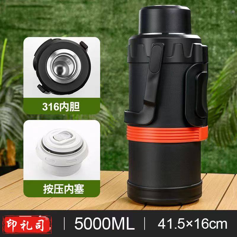 琪虎矮墩316不锈钢大容量保温水壶户外保温杯车载便携暖壶 5升