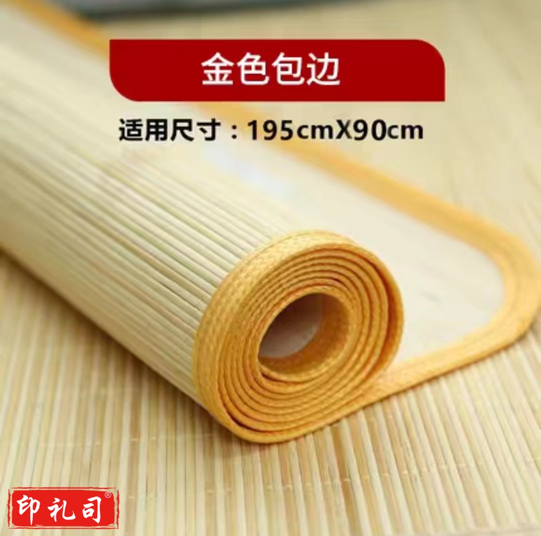 竹凉席单人 学生宿舍用竹凉席军训夏季竹席 金色包边 0.9m床 约195*90cm