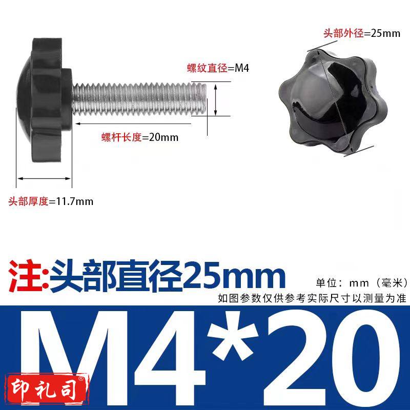 梅花手柄螺丝星形带把手胶木六星旋钮头手拧螺栓 M4*20mm 头外径25mm 5只装