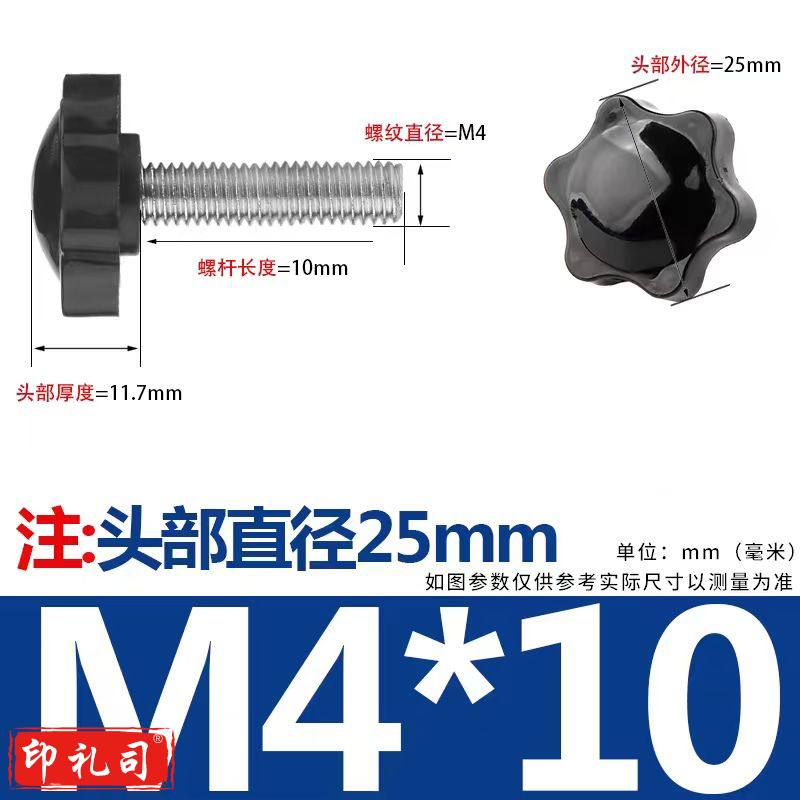 梅花手柄螺丝星形带把手胶木六星旋钮头手拧螺栓 M4*10mm 头外径25mm 5只装