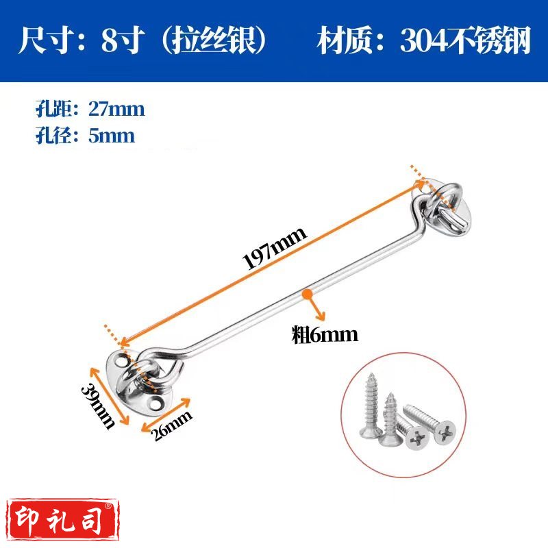 304不锈钢风勾 老式窗户风钩窗钩锁扣 门栓挂搭钩 8英寸