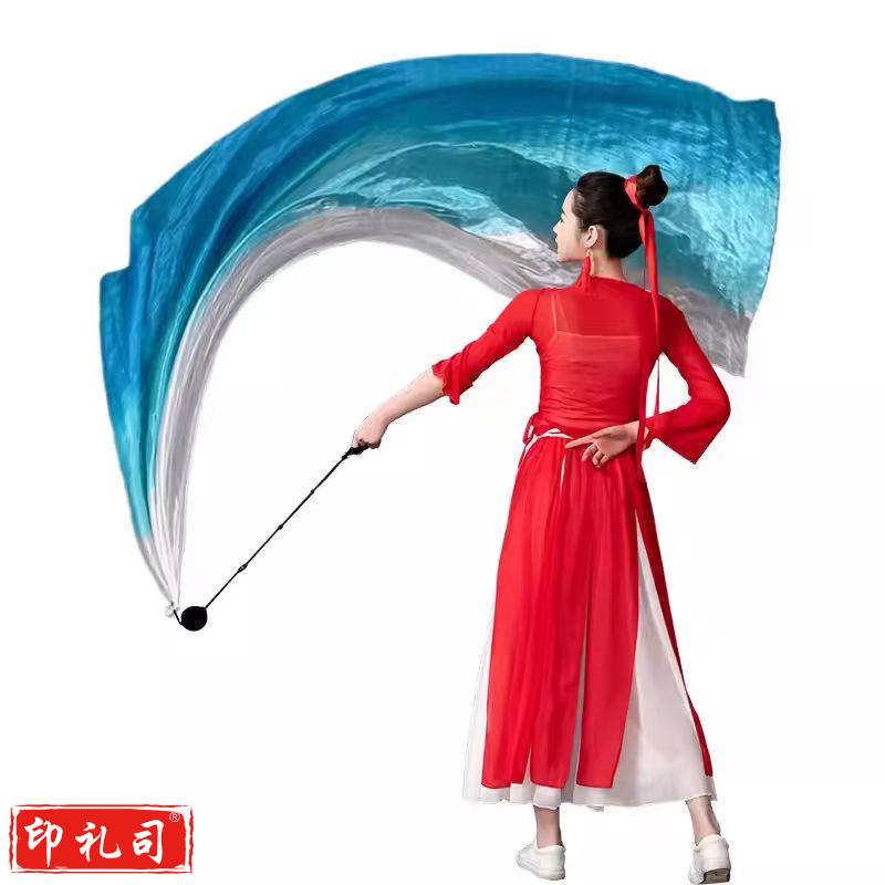运动会开幕式纱球舞甩纱巾彩绸彩带仿真丝(白湖蓝长2米含沙球)