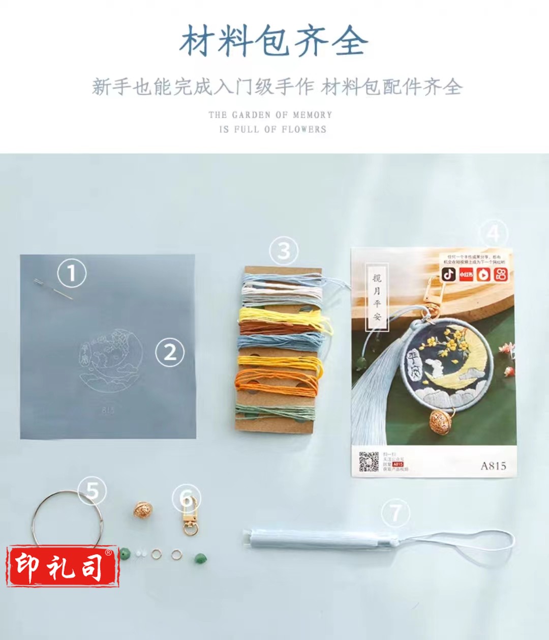 刺绣手工diy材料包钥匙扣挂件双面绣(绣绷+钥匙扣)多款可选