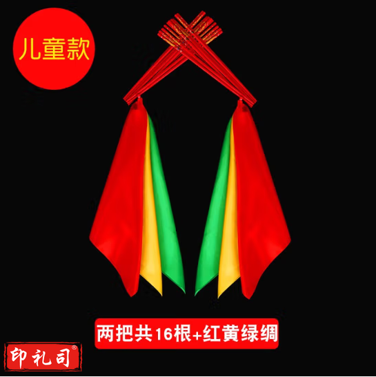 蒙古舞蹈筷子道具筷子舞 儿童款 24cm两把共16根+红黄绿绸(每手8根)