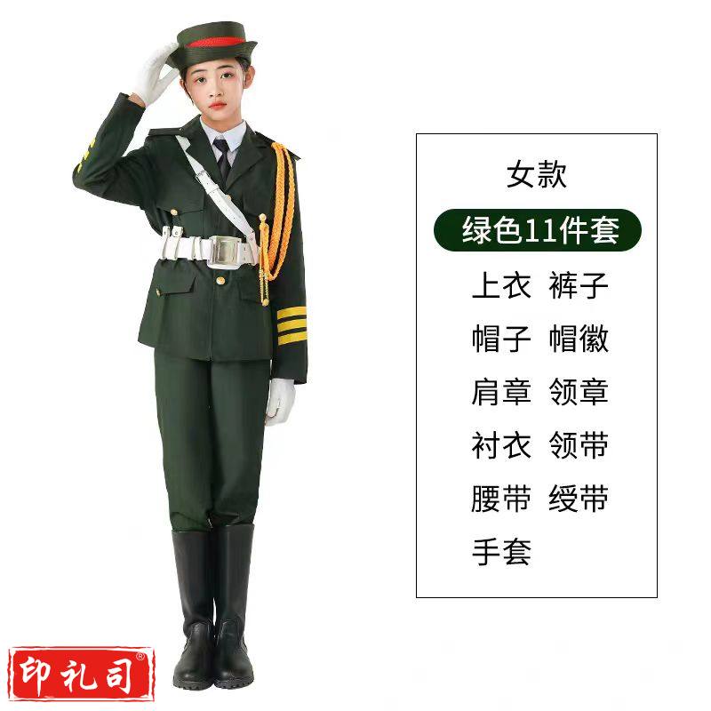 中小学国旗班升旗手 仪仗队服装学生升旗仪式护卫队礼服(绿色11件套)(尺寸:110-175)