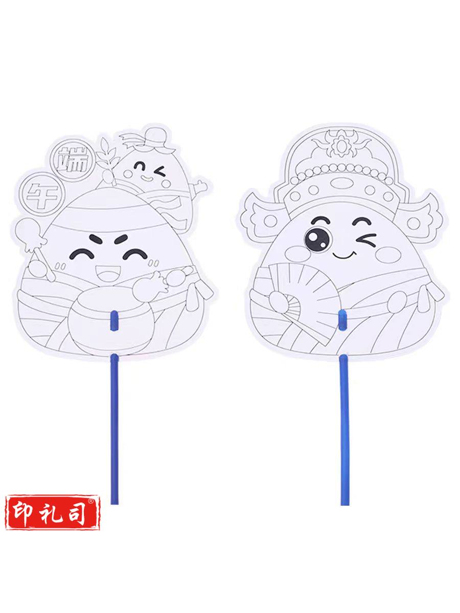端午节涂鸦diy手工粽扇子儿童自制材料我创意美术 图案随机(5个装)