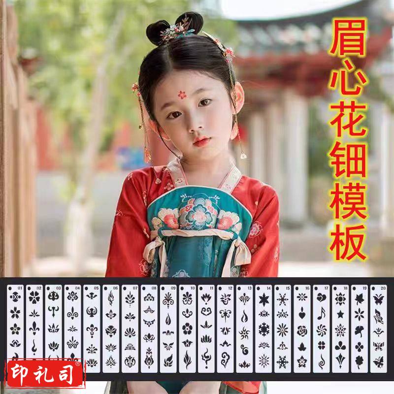 手绘眉心花钿镂空模板花钿额贴汉服古风模具额头贴花手绘(儿童款20张)