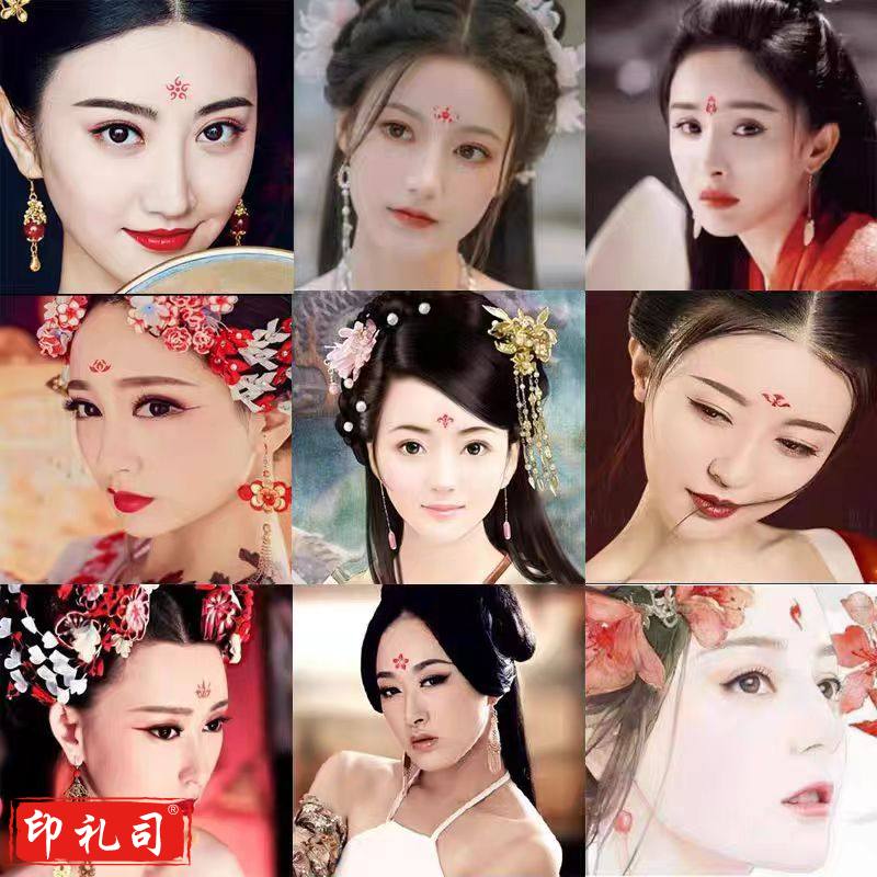 手绘眉心花钿镂空模板花钿额贴汉服古风模具额头贴花手绘(成人款25张)