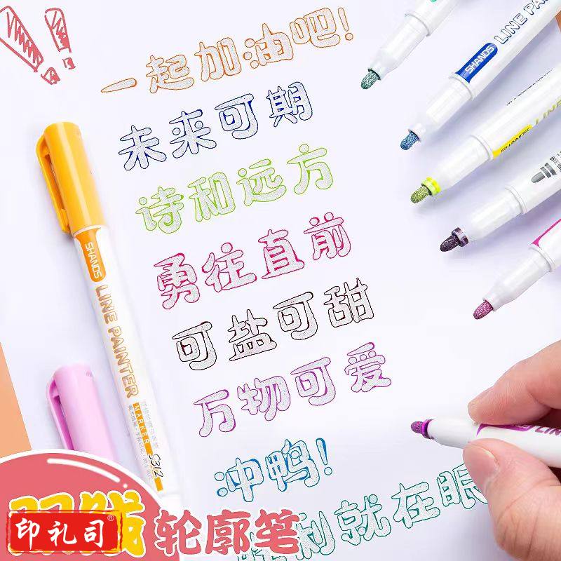 双线轮廓笔闪光手抄报手帐专用 荧光笔标记彩笔 8色