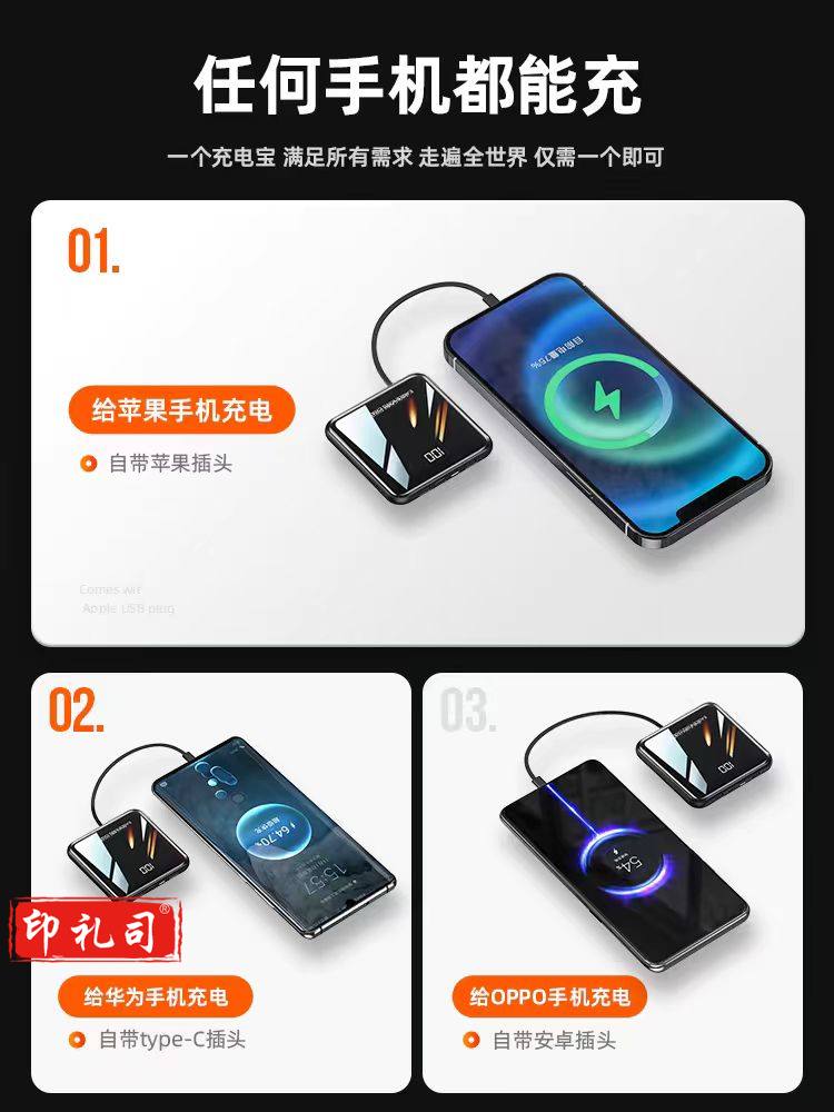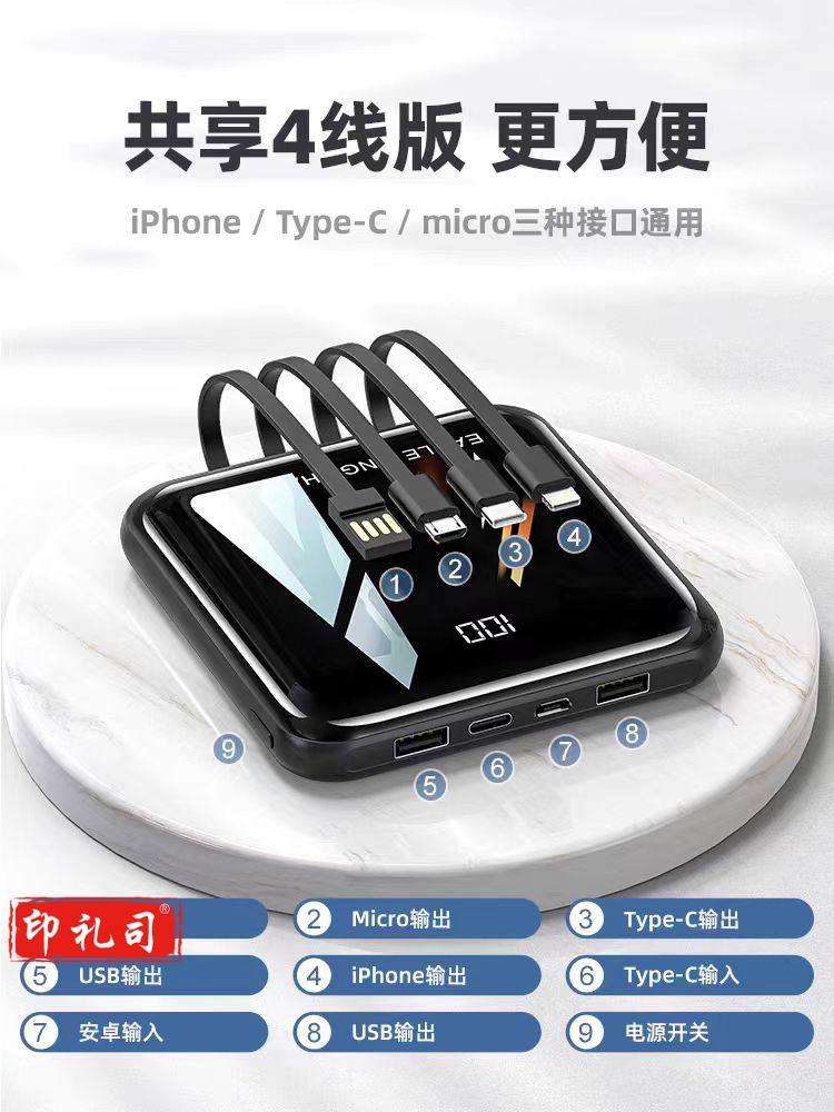 充电宝20000毫安快充超薄便携迷你四线快充适用华为小米苹果 标准版炫酷黑
