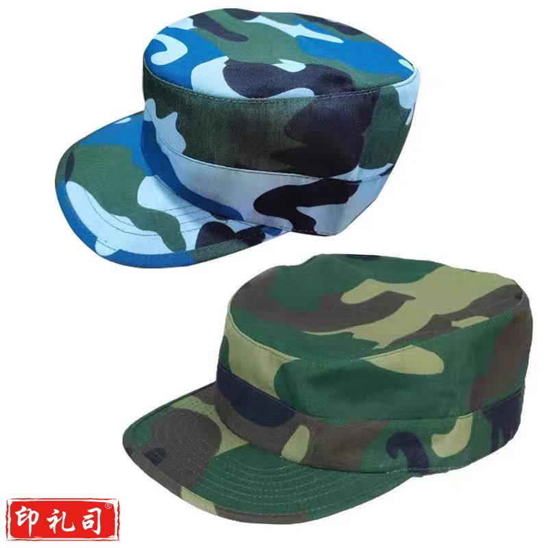 户外迷彩帽男学生军训帽女遮阳帽鸭舌军迷平顶帽子可调节大小 草绿帽 均码(适合头围55-60CM)