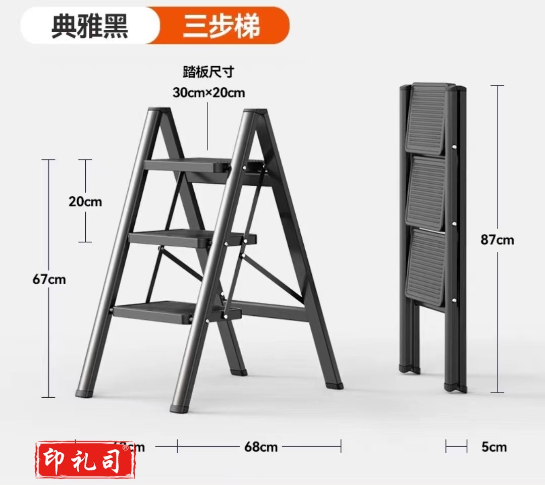 折叠小梯子安全伸缩凳踏板爬梯室人字内多功能升降楼梯 典雅黑【花架梯三步】