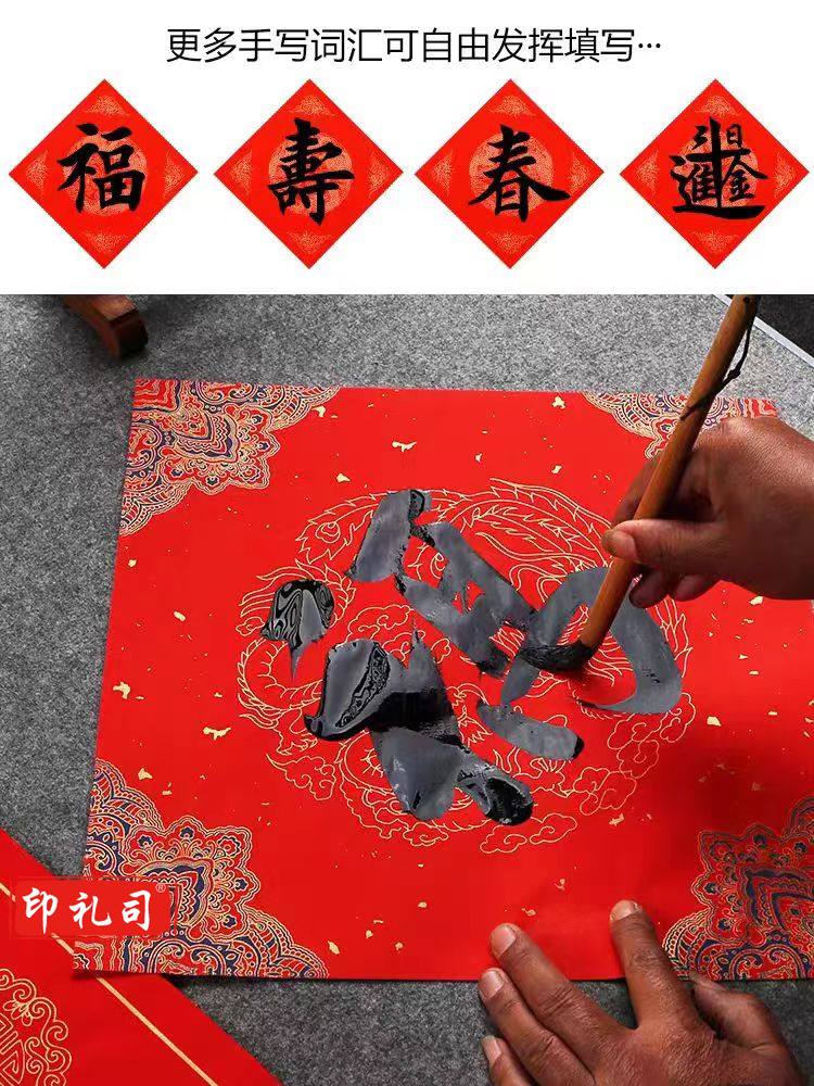 空白对联手写春联纸万年红宣纸大红纸毛笔字书法作品创作半生半熟蜡染宣纸七言 宫廷彩绘斗方20张(34*34cm)多款可选