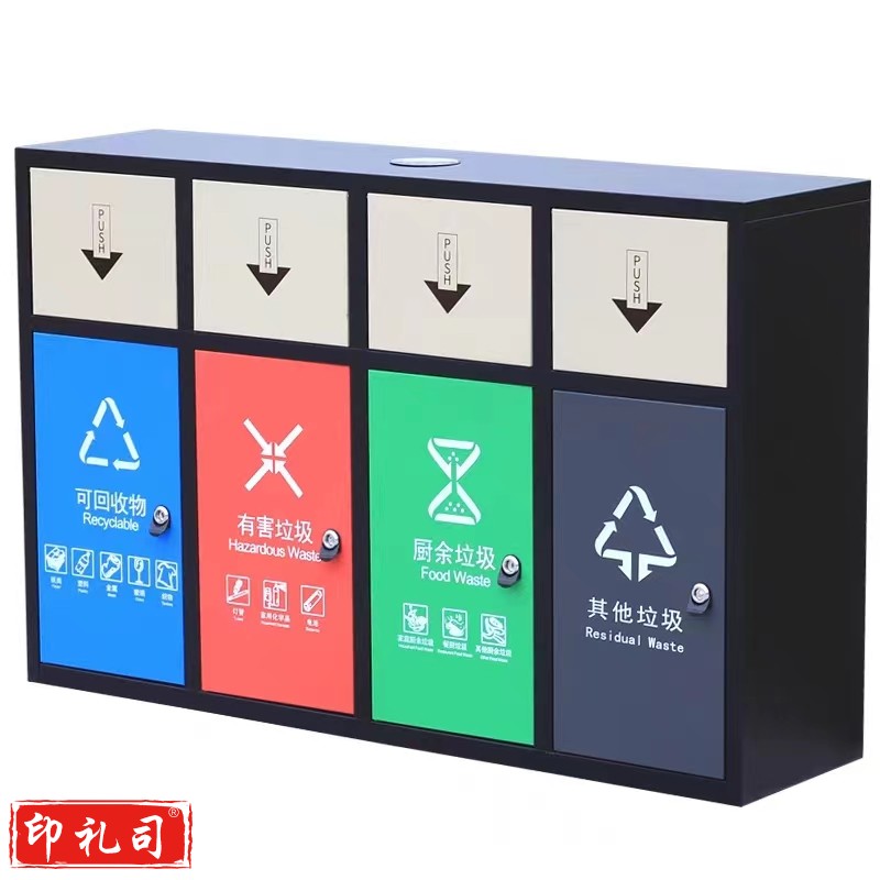 户外四分类垃圾桶连体带盖不锈钢垃圾箱 四分类