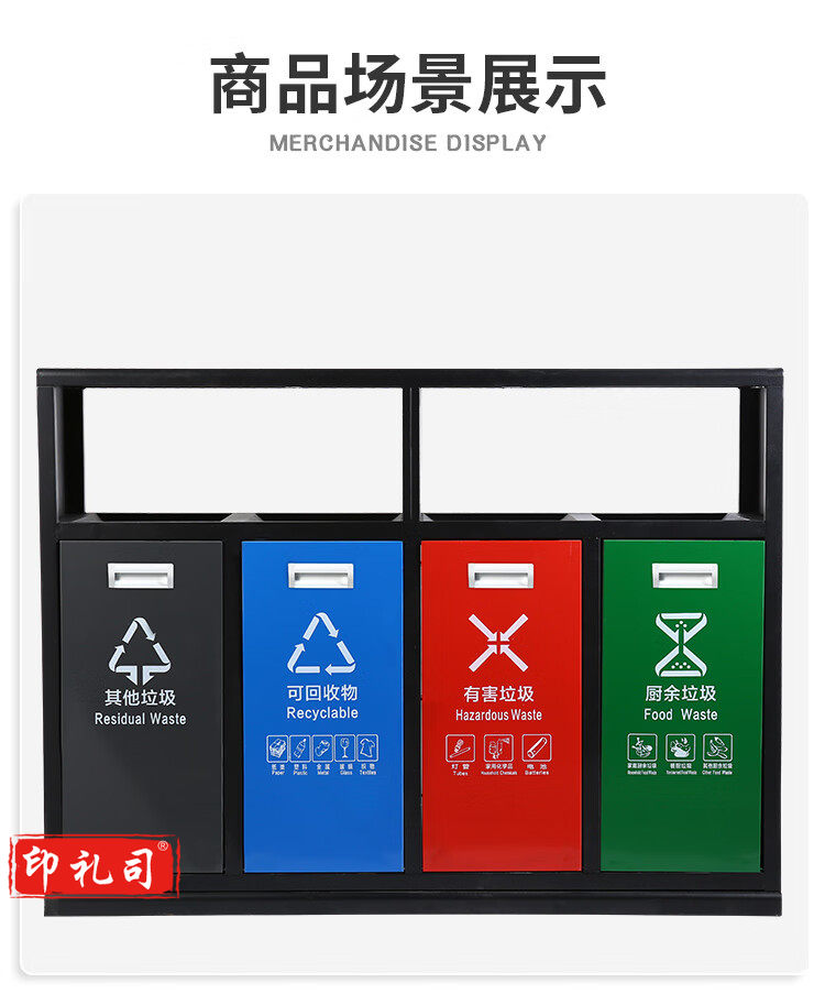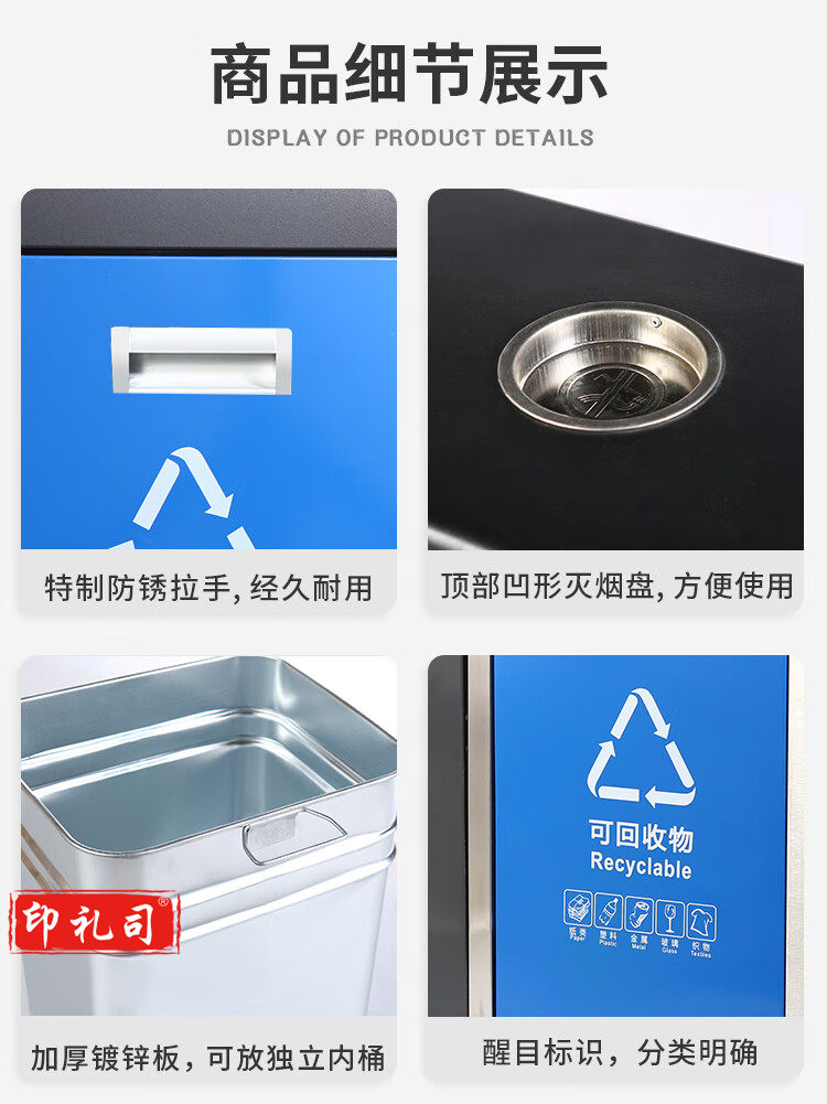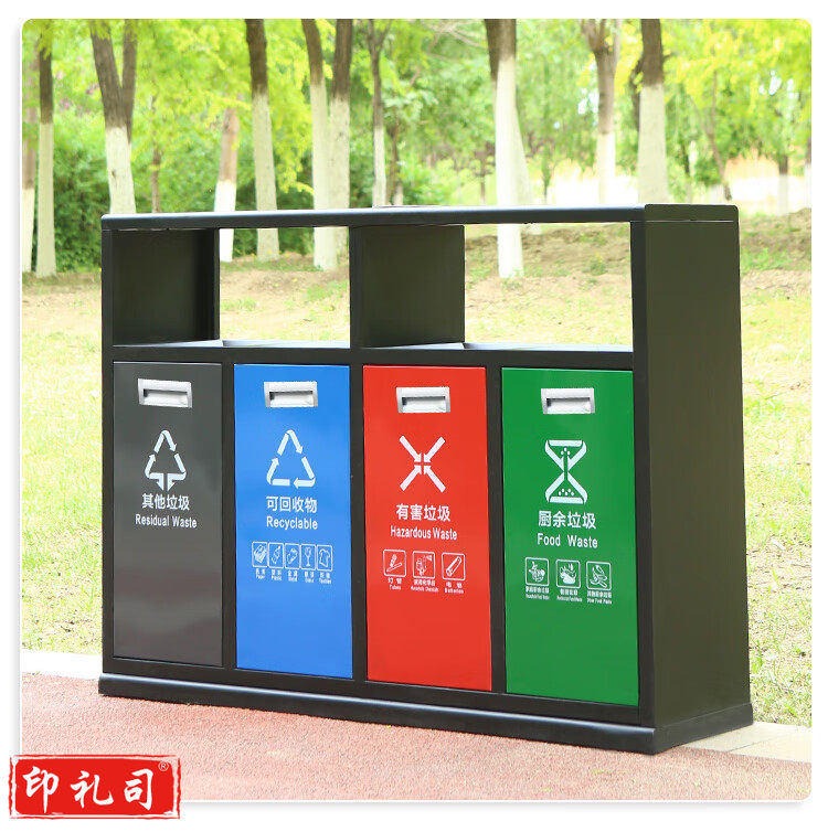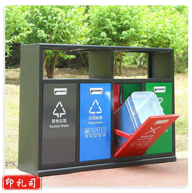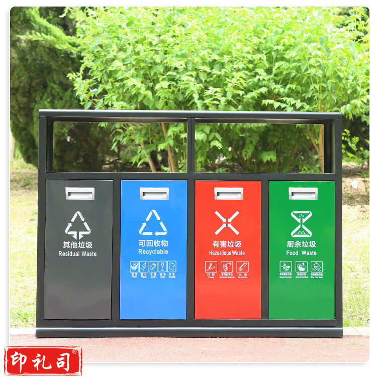 新国标B6四分类镀锌板户外垃圾桶 市政环卫镀锌板果皮箱大号物业分类环保公园景区街道小区连体垃圾桶