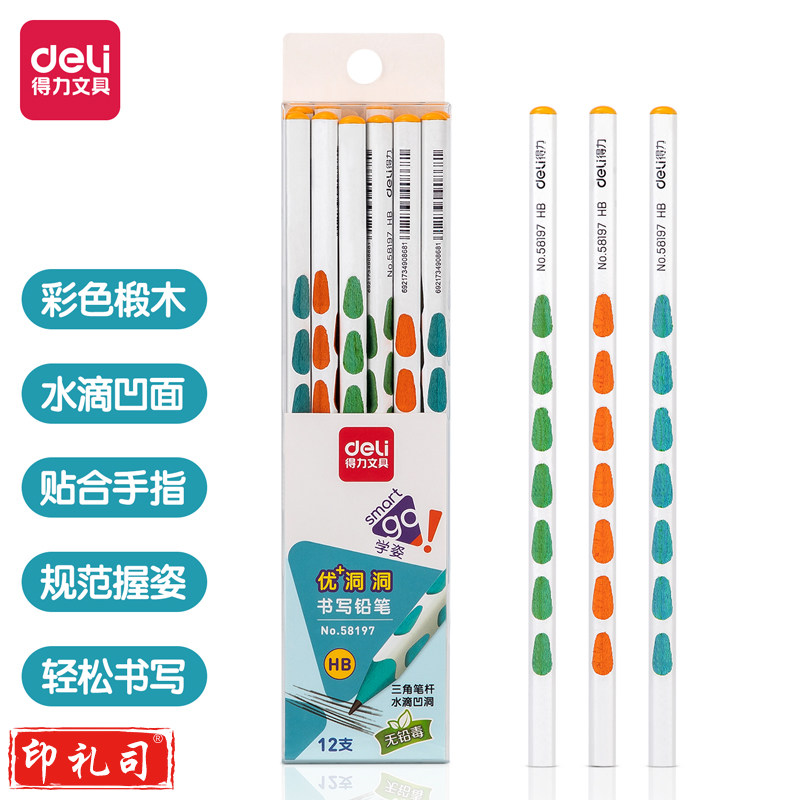 得力58197_优+洞洞HB铅笔12支PET盒装(混)(12支/盒)