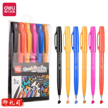 得力(deli)SK145彩色醒目荧光笔 标记笔 6色柔彩荧光笔