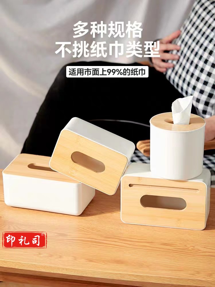 竹木纸巾盒纸抽盒 收纳饭店办公抽纸盒约18*12*10cm