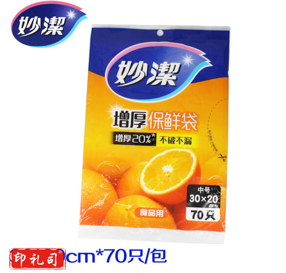 妙洁(MIAOJIE ) 厚实 耐用 抽取式保鲜袋 单包装 中号 70个装